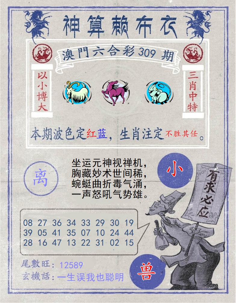 | 298期:国士无双【蓝波绿波】开:羊23准 |