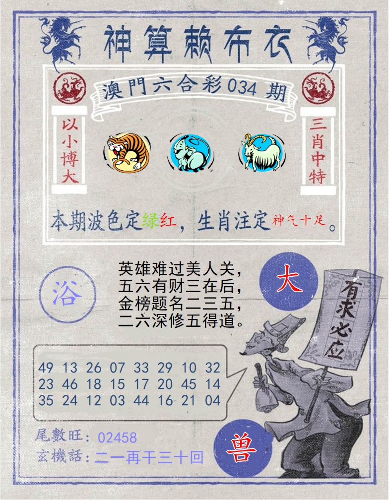 | 033期:四十九个数中合,四五书头点玄机,谁能一夜十三次,三兄有势走幸运 |